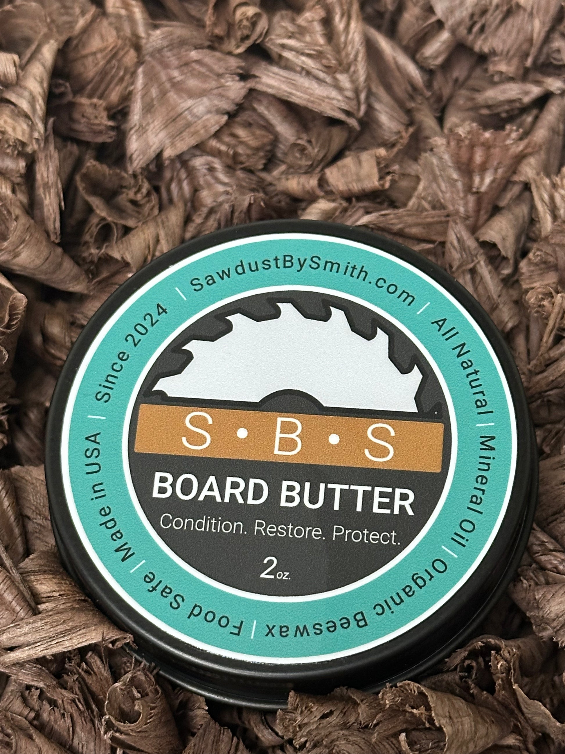 Keep your charcuterie and cutting boards looking great with our 2 oz. board butter. Made from a custom blend of food safe mineral oil and organic beeswax. This combination will not sour or affect food placed on the board.